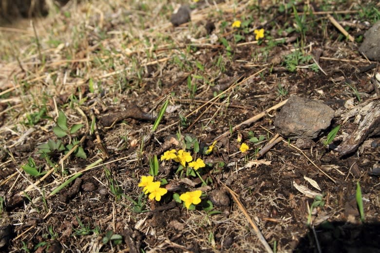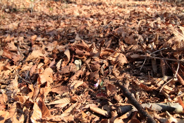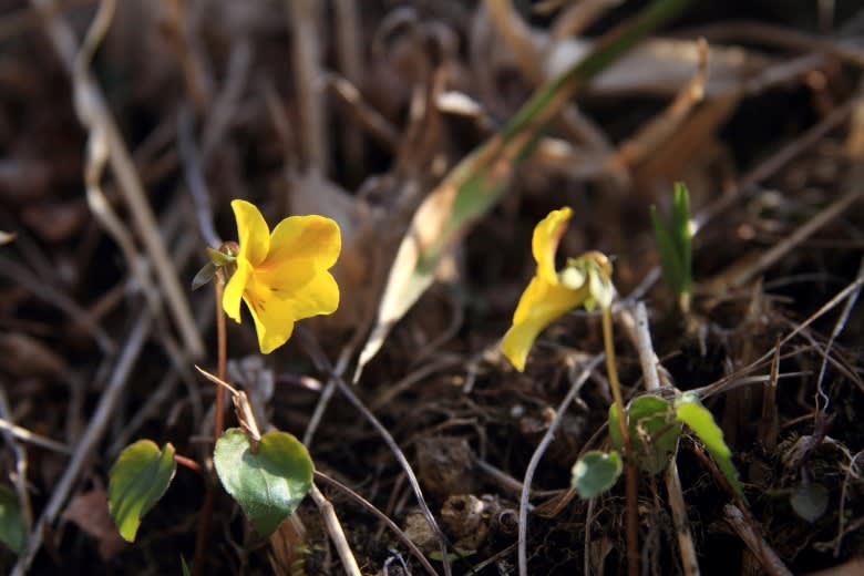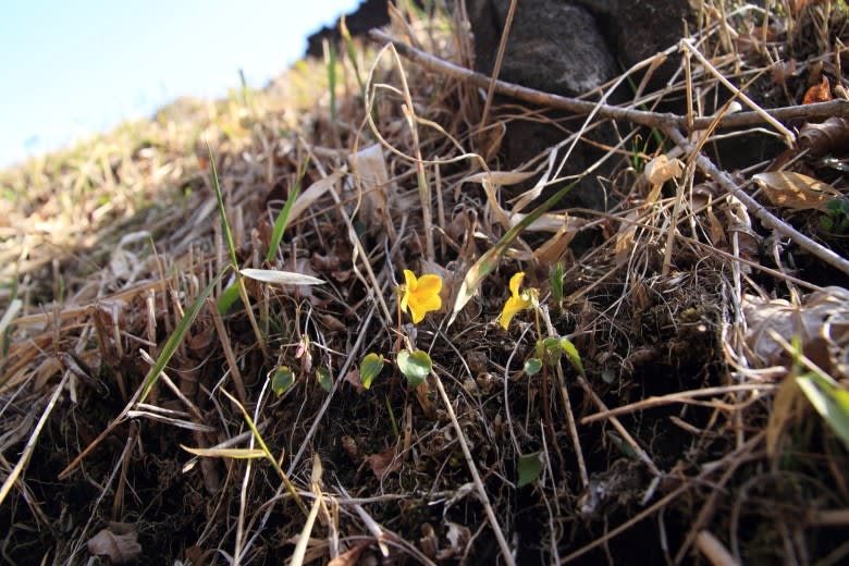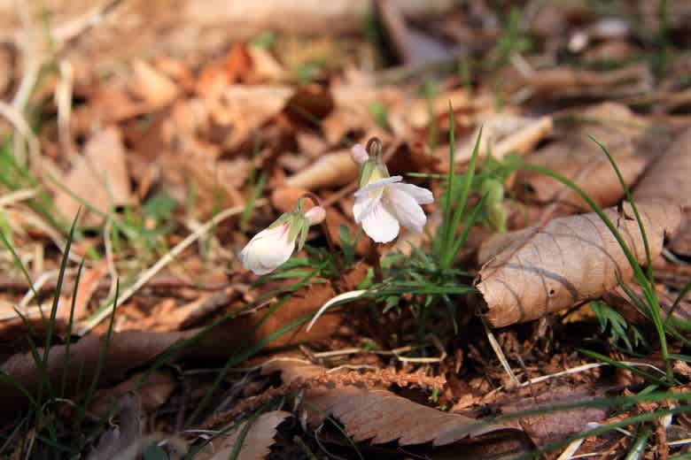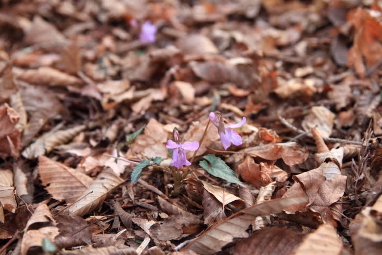 先日下見に出かけた時はまだ蕾で1輪も咲いていなかったスミレがようやく咲き始めた。