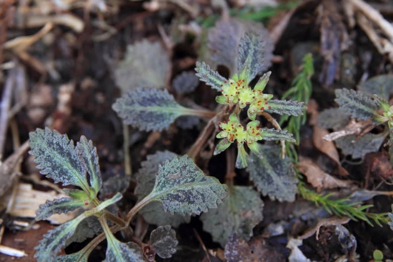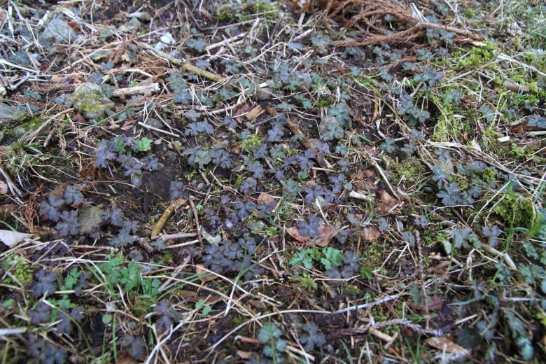 ここのヒナは葉に斑が入ったフイリヒナスミレが多い。